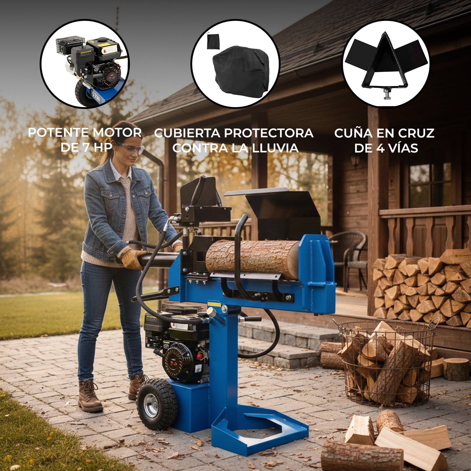 Tanto si es propietario de una vivienda que se abastece para el invierno, como si es agricultor que gestiona su terreno o un leñador experimentado, esta astilladora de leña a gasolina le ofrece velocidad, seguridad y un rendimiento sólido. Diseñada para ser fácil y duradera, ofrece una solución fiable para partir maderas duras y troncos de gran diámetro con el mínimo esfuerzo.