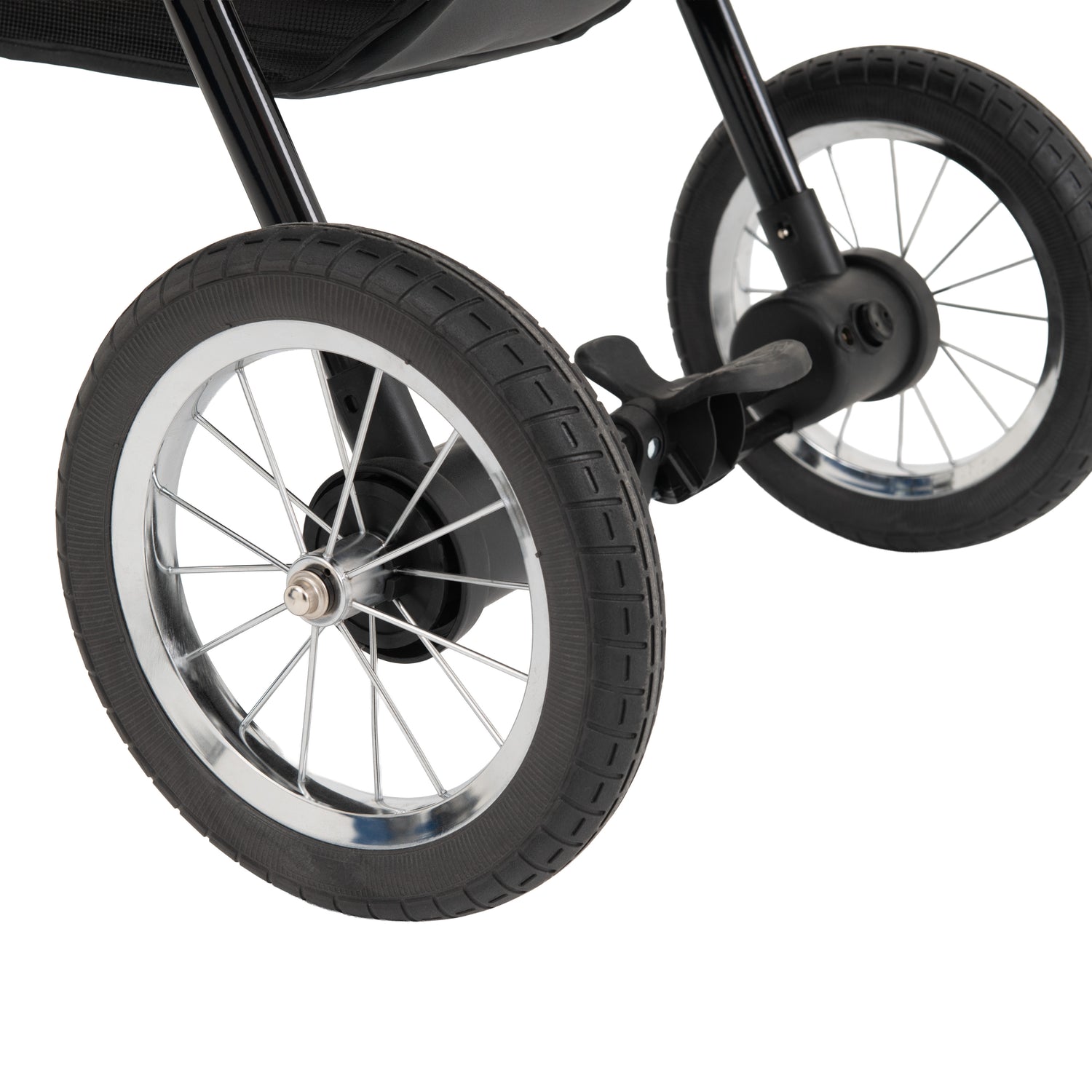 Fabricado con un chasis robusto y pensando en un manejo suave, el carrito cuenta con resistentes ruedas de 12 pulgadas sin cámara y a prueba de pinchazos, que ofrecen seguridad en todo tipo de terrenos. Su ágil diseño de 3 ruedas asegura una excelente maniobrabilidad, mientras que el freno de pie integrado permite detenerlo de forma segura en cualquier momento. Los prácticos accesos delantero y trasero facilitan que tu mascota entre y salga del carrito, reduciendo el esfuerzo tanto para ti como para tu compañero.