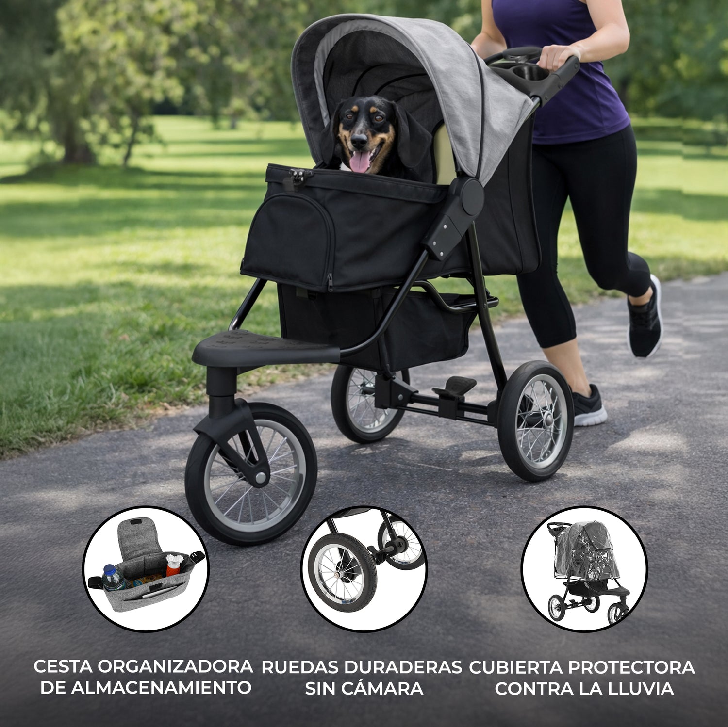 Convierte cada paseo en una experiencia para compartir con este carrito para mascotas de 3 ruedas, cuidadosamente diseñado para que tu compañero viaje cerca de ti con total comodidad y seguridad.