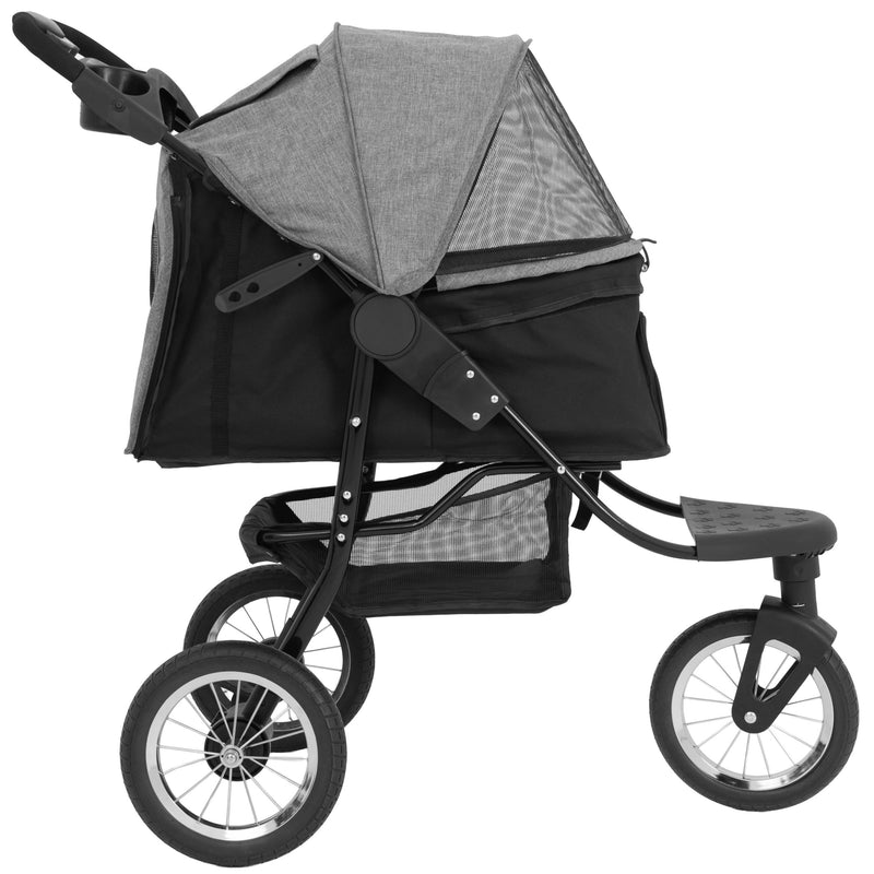 Con un elegante acabado en gris, combina estilo moderno con practicidad diaria, siendo una elección fiable para dueños que quieren incluir a su perro o gato de tamaño pequeño a mediano en los paseos. Ya sea para un paseo relajado, un trote ligero o una salida más larga, este carrito permite que tu mascota disfrute de la experiencia incluso cuando caminar largas distancias no es posible.