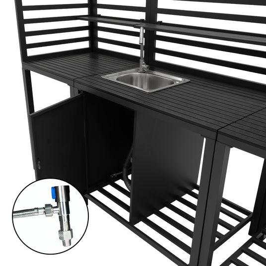 Ya sea para barbacoas veraniegas o cenas tranquilas al aire libre, esta cocina modular ofrece una solución elegante y resistente a la intemperie para preparar, enjuagar y servir alimentos al aire libre.