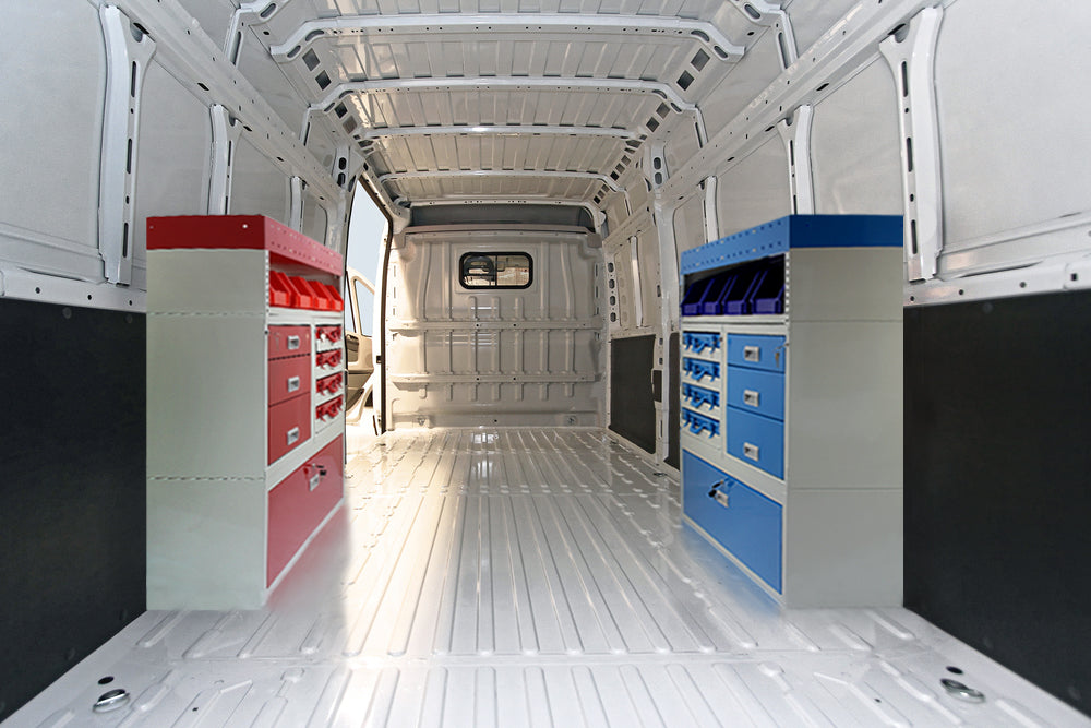Utiliza la estantería para furgoneta Storm para mantener ordenadas todas tus herramientas, maximizar el espacio y encontrar fácilmente lo que necesitas. Con una amplia variedad de estantes, cajones y compartimientos, puedes almacenar hasta 60kg de objetos mientras los cajones con cerradura y el grande armario en la parte inferior te permiten de mantener tus herramientas seguras.
