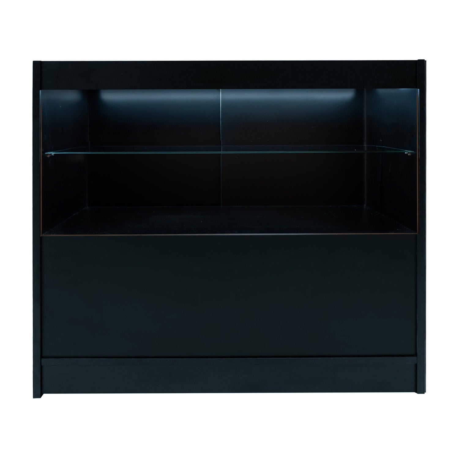Los mostradores B900/B1200/B1500 con iluminación LED ofrecen una solución de presentación moderna y elegante que combina impacto visual con practicidad diaria. Cada unidad cuenta con iluminación LED blanca brillante que realza la visibilidad de los productos, asegurando que tu mercancía capte la atención incluso en condiciones de poca luz. Con un estante de exhibición visible a través del vidrio frontal y dos estantes cerrados al público, los B900/B1200/B1500 logran un equilibrio perfecto entre almacenamiento seguro y exposición de productos. Las puertas traseras correderas con cerradura mantienen el stock protegido, al tiempo que conservan una apariencia limpia y ordenada de cara al cliente. Ya sea para exhibir joyas, accesorios o artículos de alta gama, los mostradores B900/B1200/B1500 ofrecen un punto focal profesional y refinado.