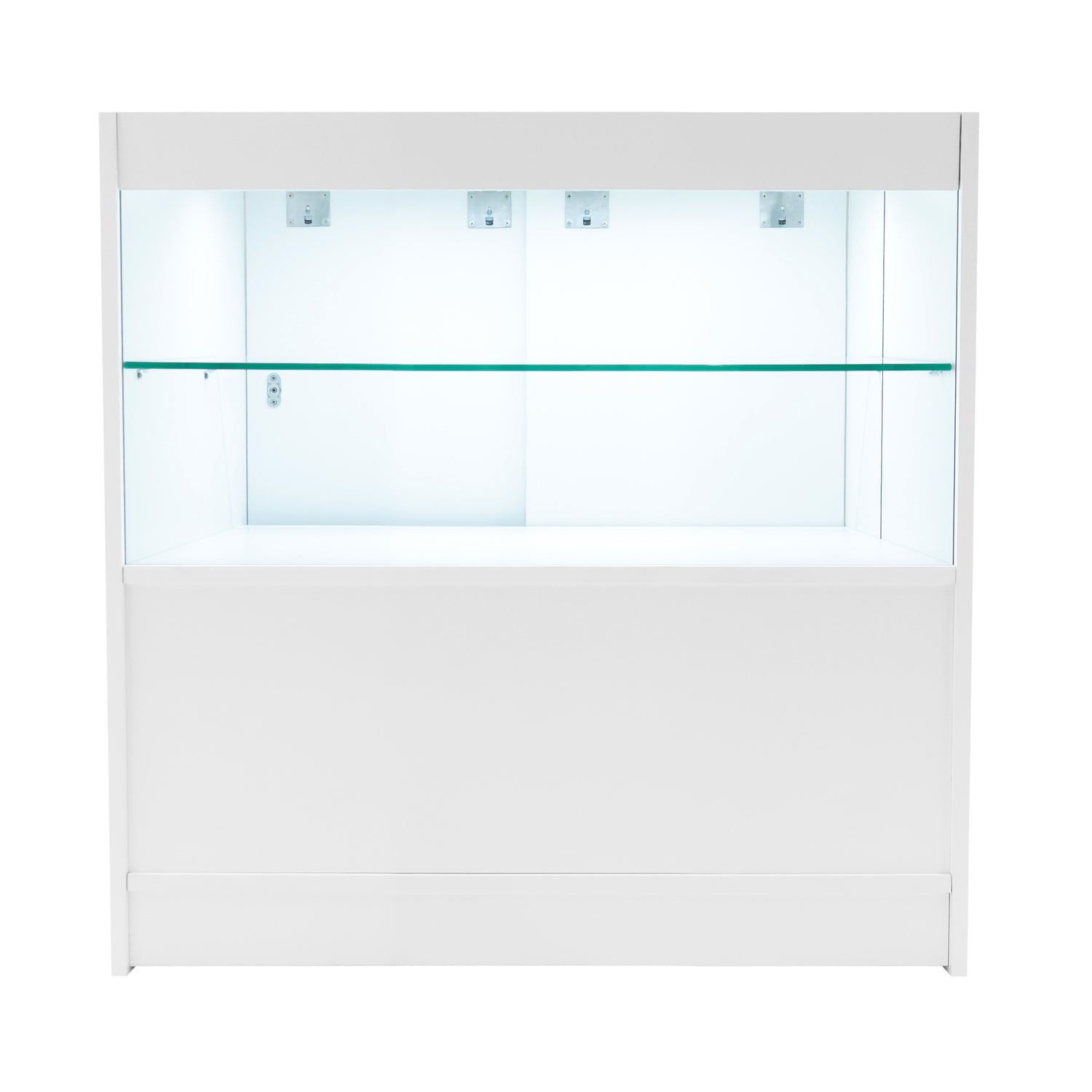 Los mostradores B900/B1200/B1500 con iluminación LED ofrecen una solución de presentación moderna y elegante que combina impacto visual con practicidad diaria. Cada unidad cuenta con iluminación LED blanca brillante que realza la visibilidad de los productos, asegurando que tu mercancía capte la atención incluso en condiciones de poca luz. Con un estante de exhibición visible a través del vidrio frontal y dos estantes cerrados al público, los B900/B1200/B1500 logran un equilibrio perfecto entre almacenamiento seguro y exposición de productos. Las puertas traseras correderas con cerradura mantienen el stock protegido, al tiempo que conservan una apariencia limpia y ordenada de cara al cliente. Ya sea para exhibir joyas, accesorios o artículos de alta gama, los mostradores B900/B1200/B1500 ofrecen un punto focal profesional y refinado.
