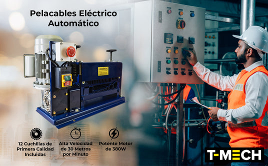 Pele los cables de forma fácil y precisa con la máquina peladora de cables eléctricos de alta resistencia T-Mech. Diga adiós al pelado manual de cables! Esta fiable máquina automática lo hace todo por usted con una increíble gama de cables de 1,5mm - 38mm.