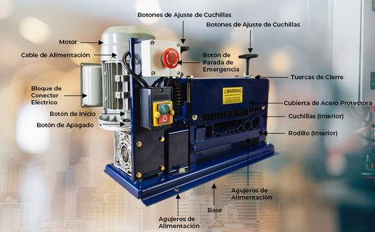 Diseñada pensando en la seguridad del usuario, la peladora de cables T-Mech cuenta con una interfaz fácil de usar y un botón de parada de emergencia integrado. Esto garantiza que pueda operar la máquina con confianza, con capacidad de apagado inmediato en caso de emergencia.