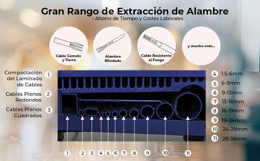 • La máquina, fácil de usar, puede pelar de forma precisa y eficiente cables de 1,5 mm a 38 mm.