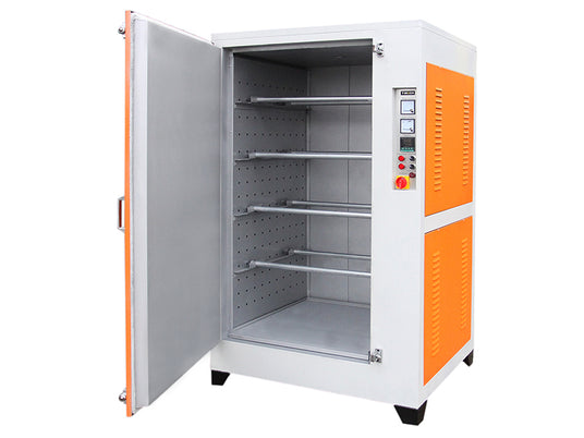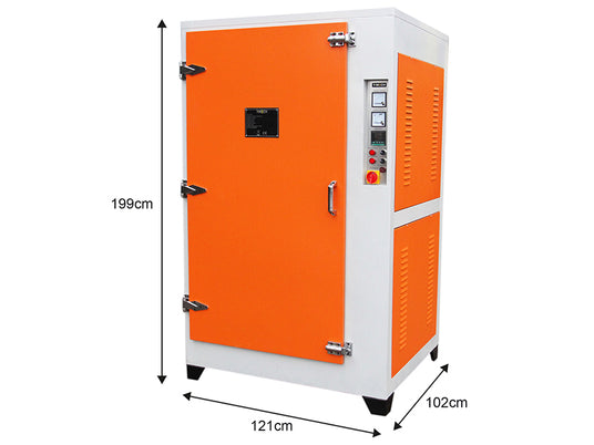 Perfecto para diversos sectores, este horno es ideal tanto para la restauración de aleaciones en la industria automotriz como para renovar muebles en el hogar. Su diseño espacioso permite trabajar con una gran variedad de artículos pequeños y medianos, como herramientas, carcasas de lámparas, mesas, taburetes y mucho más. Con ocho raíles y cuatro estantes, ofrece espacio suficiente para organizar, colgar o colocar las piezas según tus necesidades, impulsando así la productividad de tu negocio.