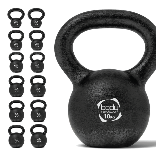 Disponible en incrementos de peso de 2 kg a 28 kg, esta kettlebell se adapta a todos los niveles y objetivos de entrenamiento. Ya sea que comiences con pesos ligeros o avances hacia rutinas más intensas, te acompaña en cada etapa. Ideal para el acondicionamiento corporal completo, la quema de grasa y el desarrollo muscular, la kettlebell de hierro fundido Body Revolution es imprescindible para lograr resultados duraderos.