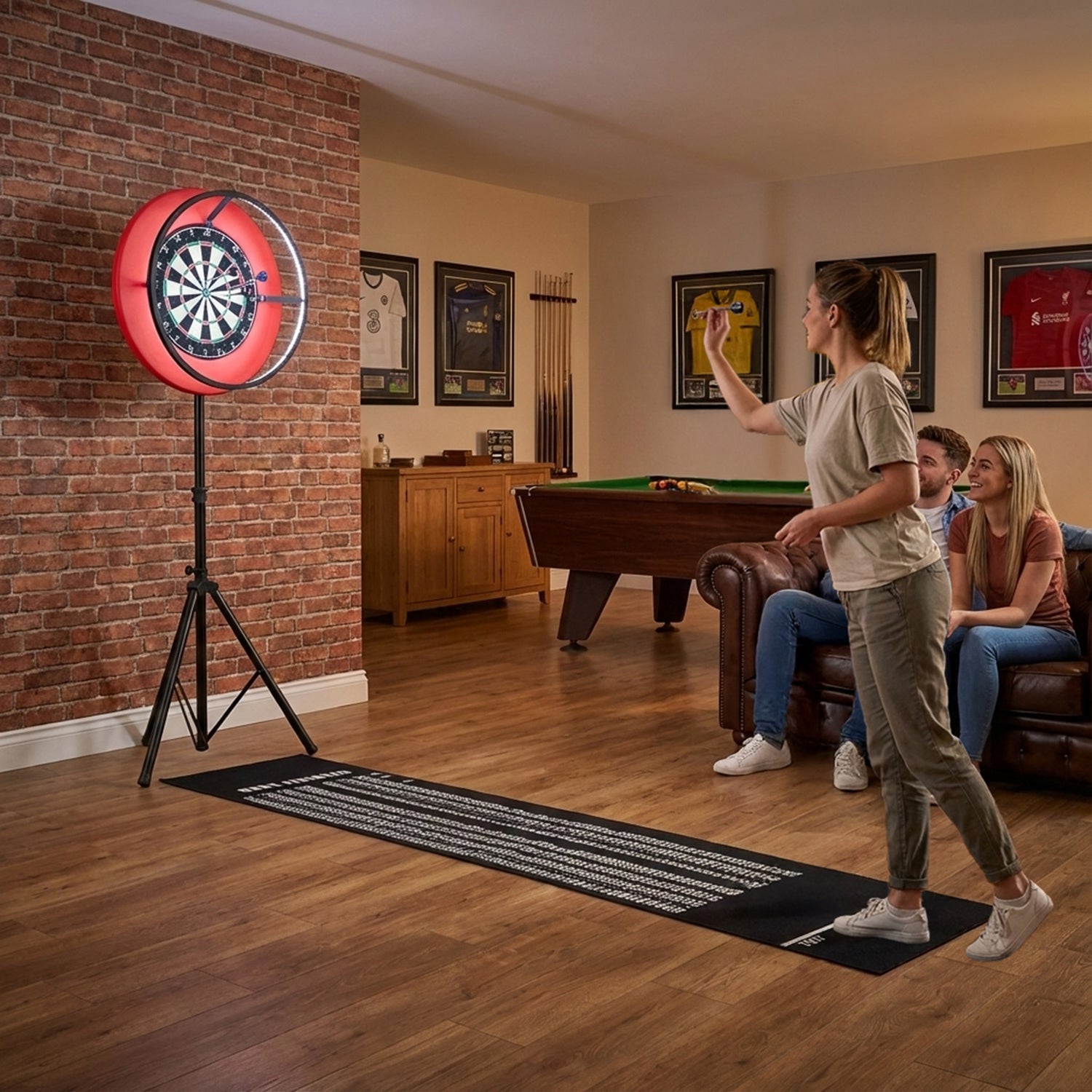 Para mejorar tanto el rendimiento como la atmósfera, el set de dardos incluye un anillo de iluminación LED regulable, que proporciona una iluminación brillante y uniforme sobre todo el tablero, junto con un marco autorregenerable que protege de lanzamientos fuera de lugar y mantiene el conjunto con apariencia profesional. Seis dardos de precisión y una alfombrilla de dardos impreso con acabados de control y ecuaciones de puntuación completan la experiencia, fomentando el desarrollo de habilidades y añadiendo un toque competitivo y sofisticado a cada juego.