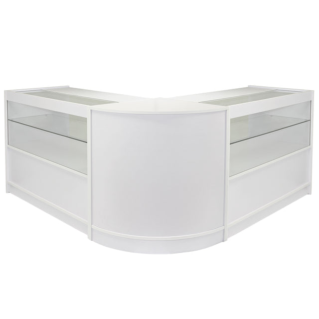 El conjunto de mostradores Gemini está disponible en color arce o blanco brillante e incluye dos unidades C1200 y un mostrador CM60, que juntos forman una práctica disposición en forma de L.