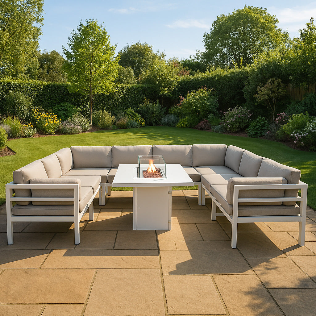 Elaborado en aluminio Blanco premium, que no solo garantiza su durabilidad de este conjunto de sofá modular, sino que también irradia un estilo atemporal. Su diseño modular, con ocho asientos espaciosos, permite arreglos personalizables, haciéndolo versátil para diversas ocasiones al aire libre, ya sea para albergar reuniones y fiestas o crear un santuario personal íntimo.