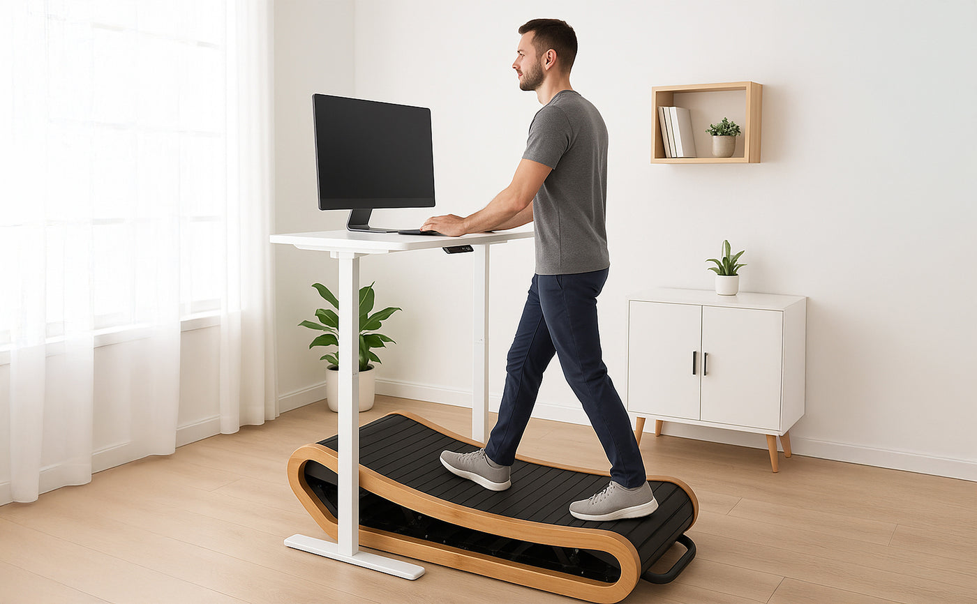 Diseñada para combinar productividad y movimiento, esta elegante cinta de correr curva de madera ofrece una forma inteligente y con estilo de mantenerse activo mientras trabajas.