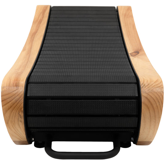 Con un acabado de madera suave y líneas limpias sin asas, esta cinta de correr fusiona la calidez natural con una estética moderna y minimalista. Su estructura abierta se integra fácilmente bajo la mayoría de los escritorios de pie, brindando libertad total de movimiento y estilo contemporáneo.