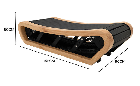 Esta cinta de correr no utiliza motor, lo que la hace extremadamente silenciosa y ecológica, perfecta para oficinas compartidas o entornos domésticos donde el ruido es un factor importante. Las ruedas integradas en la parte trasera permiten moverla o guardarla con facilidad, y llega completamente montada para que puedas empezar a usarla de inmediato. Su sólida estructura de madera no solo garantiza durabilidad, sino que también aporta un toque cálido y natural a tu espacio de trabajo.