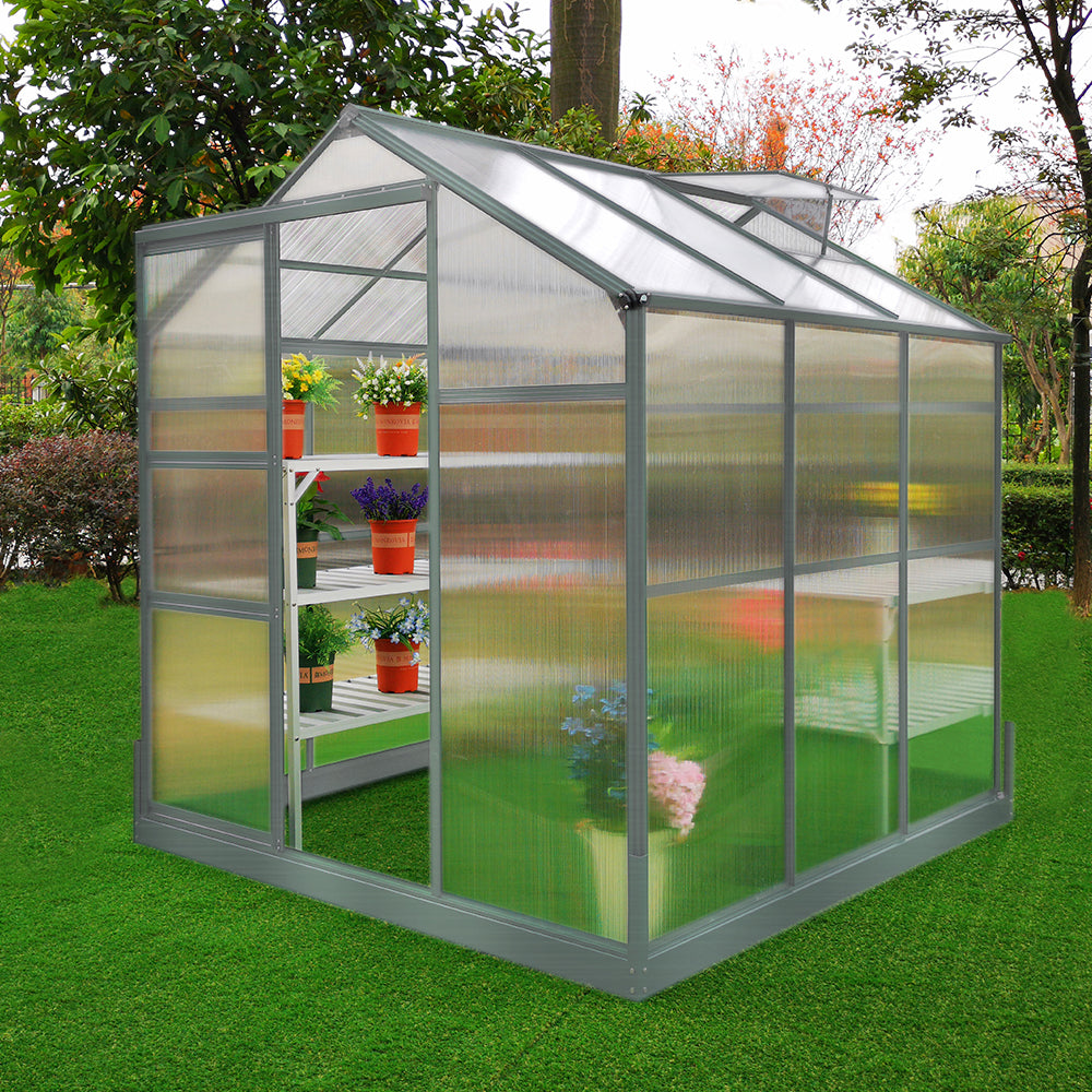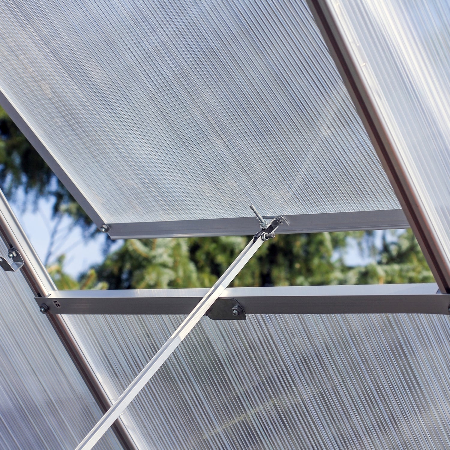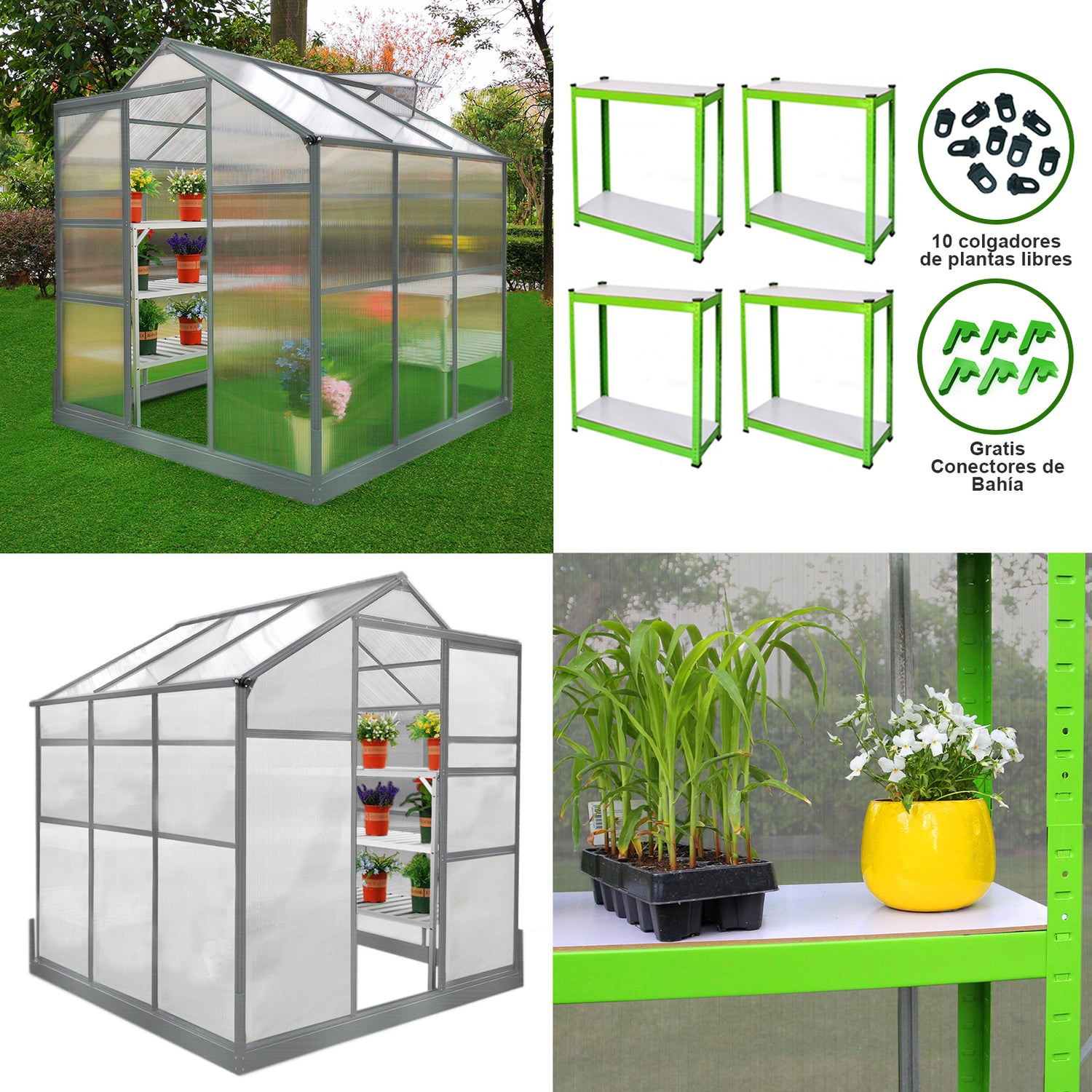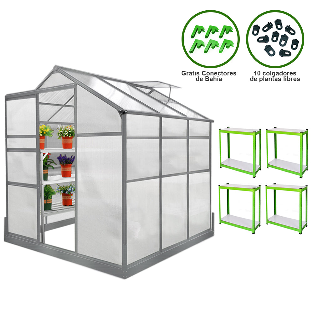Este magnífico invernadero está fabricado con una estructura de aluminio grueso y paneles de policarbonato de alta densidad, ideales para proteger tus plantas y disfrutar de su belleza durante todo el año. Los paneles dobles de policarbonato irrompible (twin wall PC) protegen las plantas de los rayos UV mientras permiten una excelente entrada de luz natural.