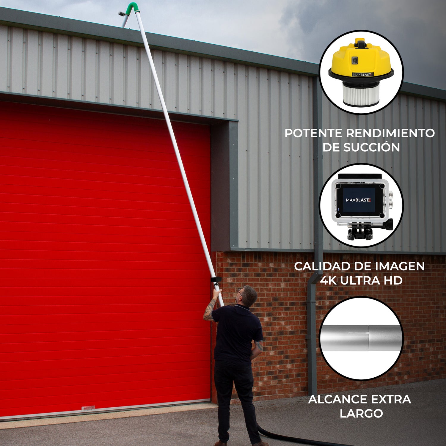 Kit de Limpieza de Canalones con Aspiradora 30L, Tubos Extensibles y Cámara 4K