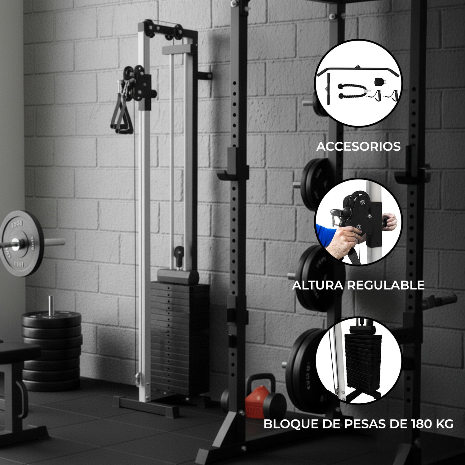 Lleva el entrenamiento de fuerza profesional a tu hogar con esta máquina de poleas, una solución compacta y potente diseñada para ofrecer el máximo rendimiento en un espacio mínimo.
