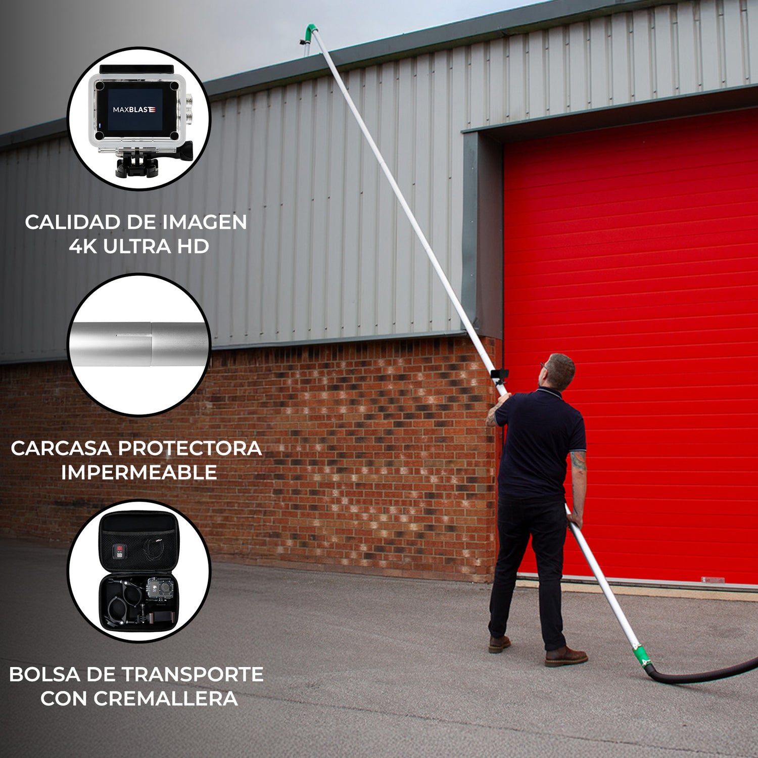 Diseñado tanto para profesionales como para propietarios, este sistema integral combina un sistema de tubos de aluminio de alto rendimiento con una cámara avanzada 4K, ofreciendo el alcance y la visibilidad necesarios para limpiar canalones de forma completa desde el suelo.