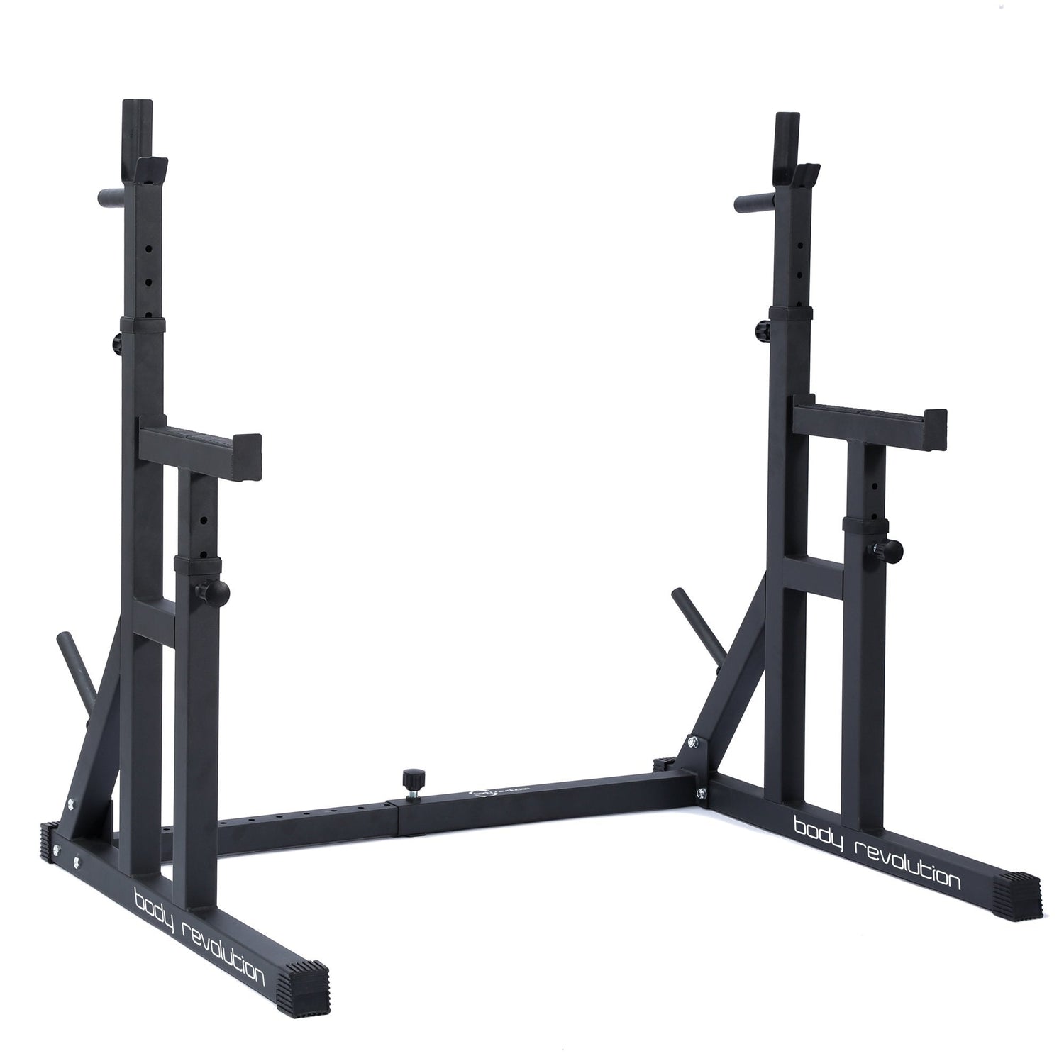 Transforma tus entrenamientos en casa con el Rack de Sentadillas Ajustable Body Revolution, diseñado para ofrecer fuerza, seguridad y versatilidad. Ideal para barras olímpicas, permite realizar sentadillas, presses y peso muerto.