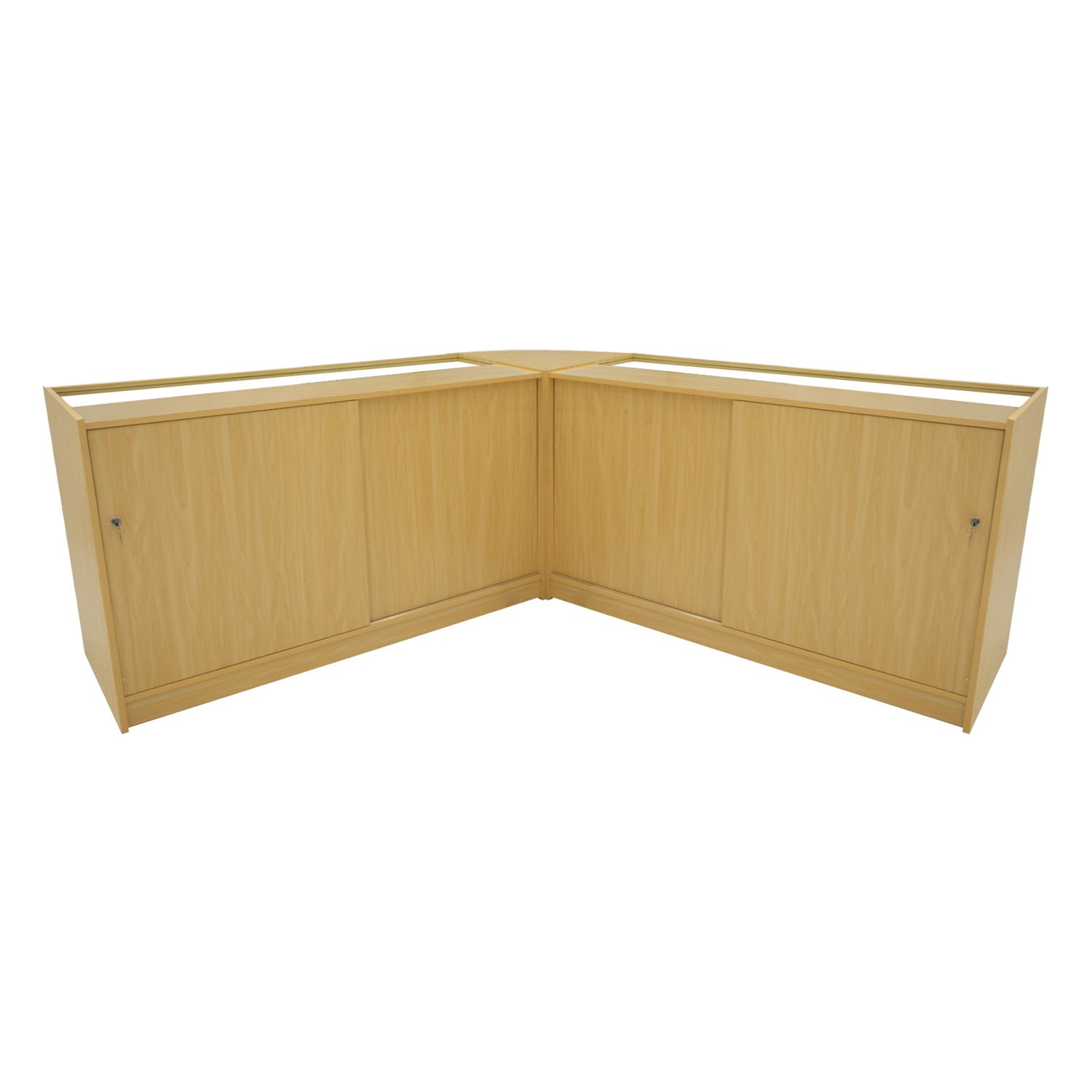 El mostrador de esquina curvo CM60 aporta funcionalidad que ahorra espacio y fluidez a la distribución del local. Su diseño curvo y compacto se integra fácilmente en las esquinas o se conecta de forma fluida con mostradores rectos, creando un sistema modular coherente. El CM60 presenta un frontal liso y cerrado para un aspecto pulido, mientras que dos estantes internos ocultos proporcionan espacio práctico para almacenar existencias o suministros. Estos estantes son accesibles desde la parte trasera únicamente cuando no hay mostradores adyacentes en ambos lados, convirtiendo al CM60 en una solución de almacenamiento discreta e inteligente para optimizar áreas de esquina sin romper la estética del diseño.