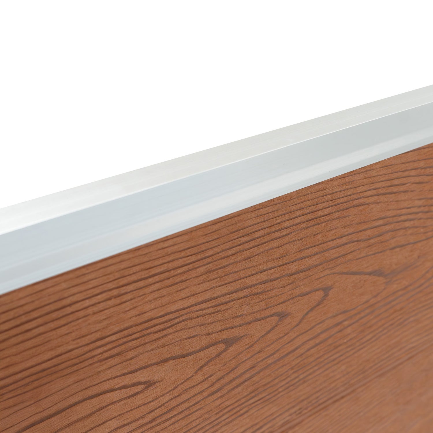Lo que distingue a este panel es su diseño versátil de doble cara: un lado presenta un elegante efecto de vetas de madera, mientras que el reverso ofrece un moderno acabado ranurado. Ambos lados lucen un sofisticado color marrón que captura la belleza de la madera sin necesidad de mantenimiento constante.